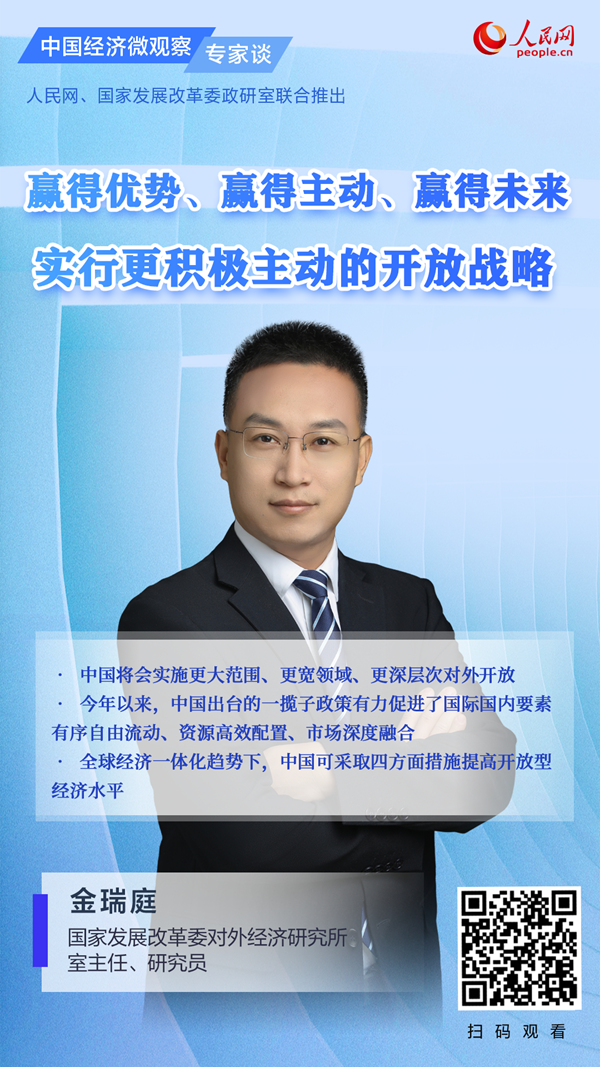 日前,国家发展改革委对外经济研究所室主任、研究员金瑞庭做客《中国经济微观察·专家谈》栏目时表示,当前,世界百年未有之大变局加速演进,新一轮科技革命和产业变革深入发展,国际力量对比深刻调整,我国发展进入战略机遇和风险挑战并存、不确定难预料因素增多的时期。要赢得优势、赢得主动、赢得未来,必须实行更加积极主动的开放战略,建设更高水平开放型经济新体制,推动实施更高水平的对外开放。